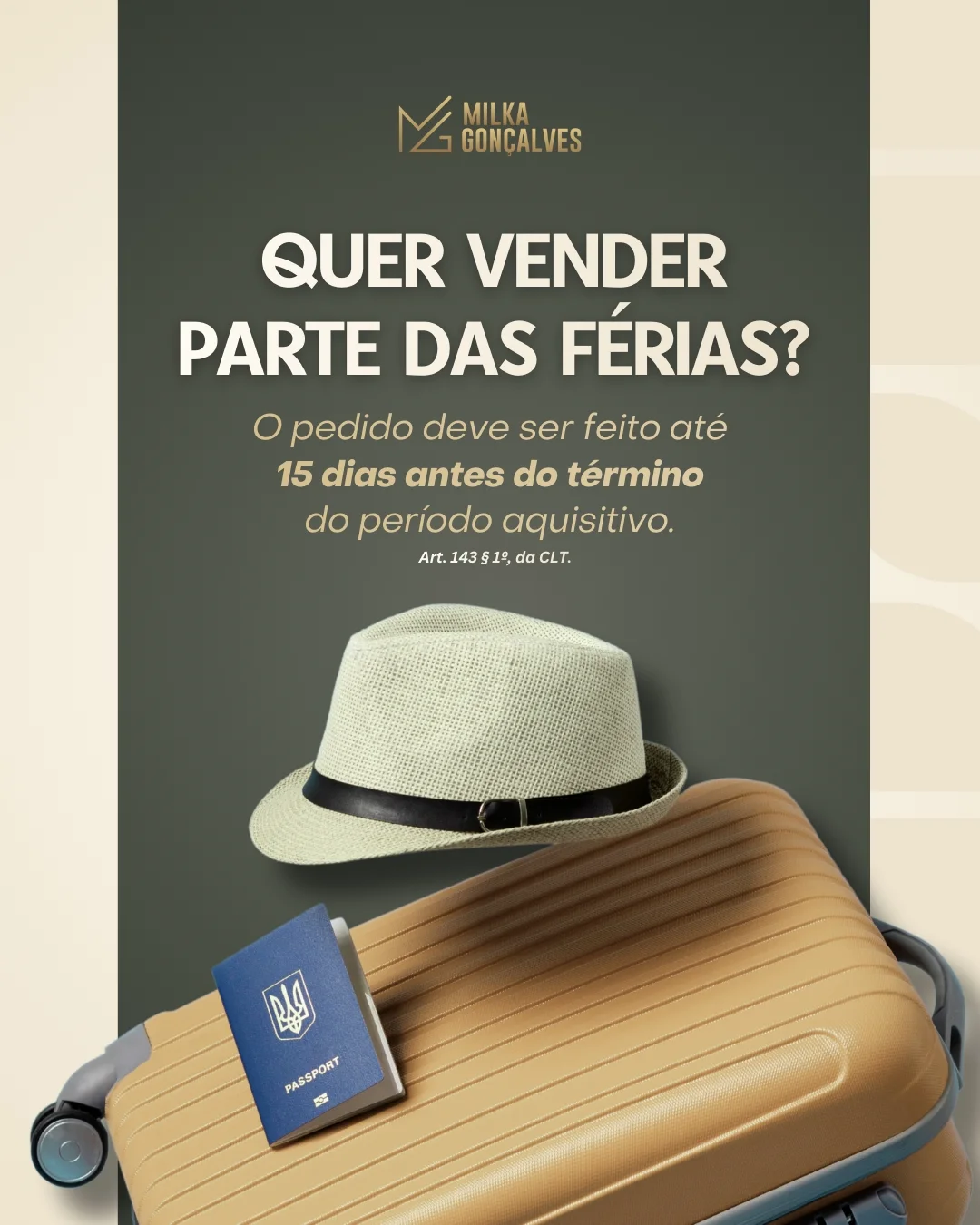O pedido deve ser feito até 15 dias antes do término do período aquisitivo.Art. 143 da CLT. Você sabe o que é o abono pecuniário?